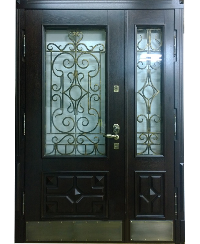 Металлические двери со стеклом по внешней отделке